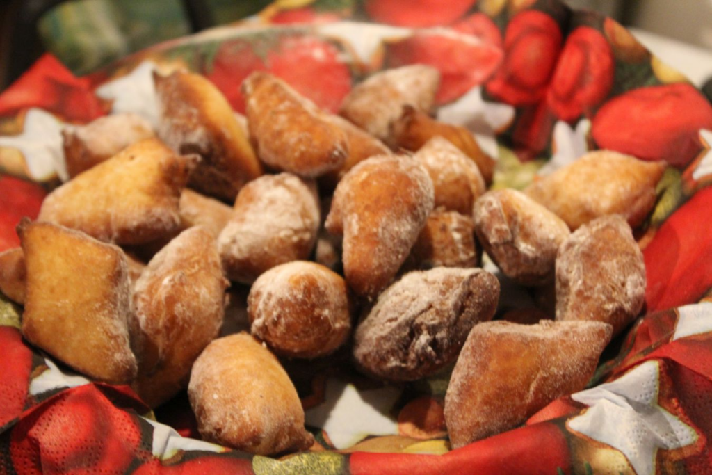 Kleine gefrituurde deegballetjes met poedersuiker.